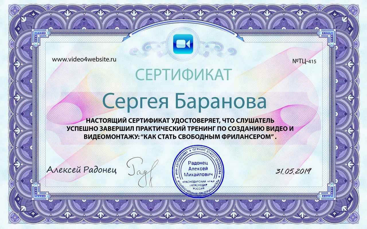 Сергей сделал для меня 2 продающих видеоролика. Очень понравилось качество работы и отзывчивость исполнителя. В планах есть еще несколько проектов, обязательно к Вам обратимся.